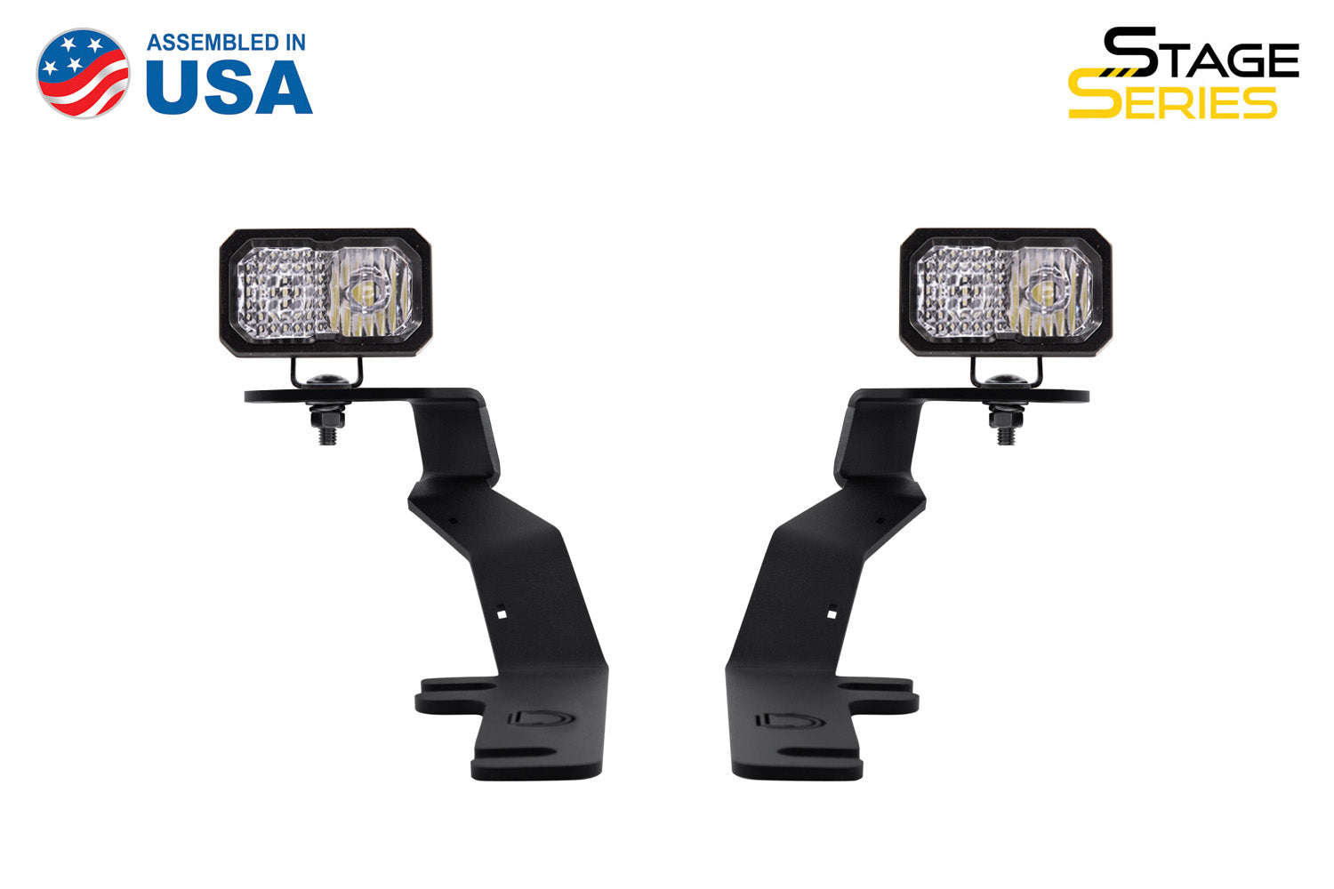 Perfect fitment. The Stage Series LED Ditch Light Kit for the 2015-2020 Ford F-150 allows you to easily mount two SS3 or SSC2 Pods above the hood. These application-specific brackets were CAD-designed to install using factory mounting points. No cutting or drilling required! This kit features a low profile design while minimizing glare, and will not interfere with raising or lowering the hood. Built to last. The brackets in this kit are constructed out of thick-gauge stainless steel. Unlike other options made out of mild steel, these brackets are full stainless steel and won't corrode over time. With their thick-gauge construction, you also won't experience any vibration or bouncing while driving. Focused. Traditional optics like reflectors or simple lenses lose light internally and to glare, so not all of the light shines on target. Instead, the custom-engineered TIR optic in the SS3 and SSC2 collects all of the light from the LED, and directs it only where you need it, drastically reducing glare and improving total efficiency.From there, while other options on the market lose as much as 10% of the light output shining through an outer lens, the custom-molded TIR optic in the SS3 and SSC2 serves as both the optic and main lens for greater efficiency and light output. Thanks to this innovative feature, when coupled with high-intensity LED chips, the total intensity of the Stage Series Pod is much greater than other LED pods using basic optics or reflectors with a standard outer lens. Functional output. All Stage Series beam pattern options were designed with optical simulation model'g, to shape the output in a highly-functional beam pattern. No matter what your auxiliary lighting needs are, there is a Stage Series optic for you! Driving is designed to supplement your high beams, but it's great for general illumination as well. Rather than a traditional "spot" pattern, the Stage Series Driving pattern shines in an 18x8 degree spread, providing just enough width to fully illuminate the road ahead at high speeds. Combo combines both the Driving and Flood optics. It shines light downrange in a focused, rectangular 40x20 degree pattern. The combo lens features a flood optic on one side and a driving optic on the other. Legal. For states that require them, we also offer snap-on covers for your SS3 and SSC2 Pods. These covers are available in a variety of colors and keep your Stage Series Pod clean and protected from dirt, dust, or whatever else the road throws your way! White or Yellow. All Stage Series LED pods are available in a cool white or selective yellow color. The white is a 6000K color temperature, which is a true cool white output, and matches most factory LED lighting. The selective yellow is a 3000K color temperature, great for high contrast in poor weather or a distinctive look on the road. We also offer replacement lenses that allow you to change the color or optic of your SS3 or SSC2 Pods. Sport or Pro. Stage Series LED pods are available at two different power levels. Both options use high-intensity LED emitters, and TIR optics for unmatched focus and overall output. However, the Pro option is double the amount of total power. Click the Specifications tab to see more information. Backlight Functionality. All SSC2 Ditch Light Kits include a distinctive Amber backlight feature. The SSC2's backlight fully illuminates the TIR optic, providing a more unique and modern look than the small indicator LEDs found in other products. Proven Reliability. Stage Series LED lighting has been extensively tested for long-term operation from -40 to 185 degrees F, along with vibration, moisture intrusion, and corrosion testing. All of these tests are completed to SAE standards, just like factory components. They've also been put to the test on-road by racers and enthusiasts alike.